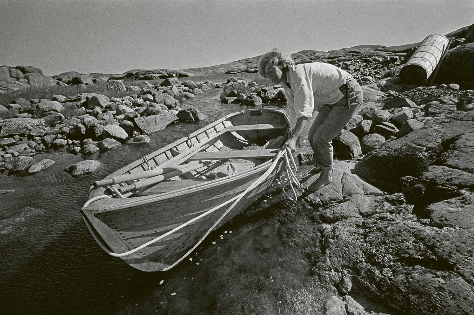 Kuva: Tove Jansson Porvoon saaristossa 1968. Kuva: Fred Ohert. Hufvudstadsbladet, Journalistinen kuva-arkisto JOKA, Museovirasto.